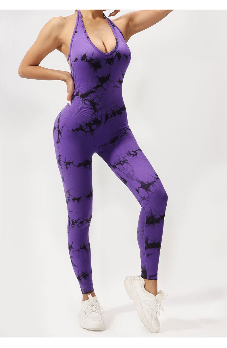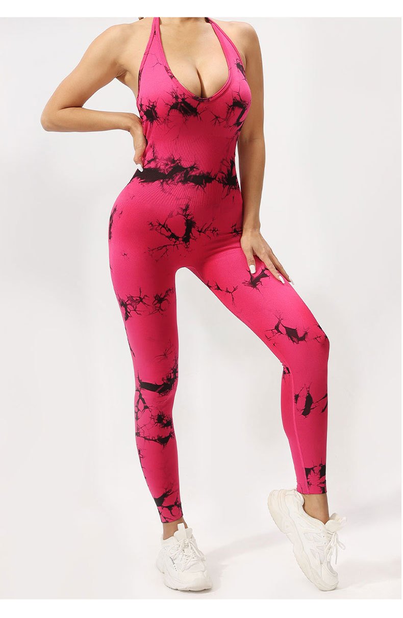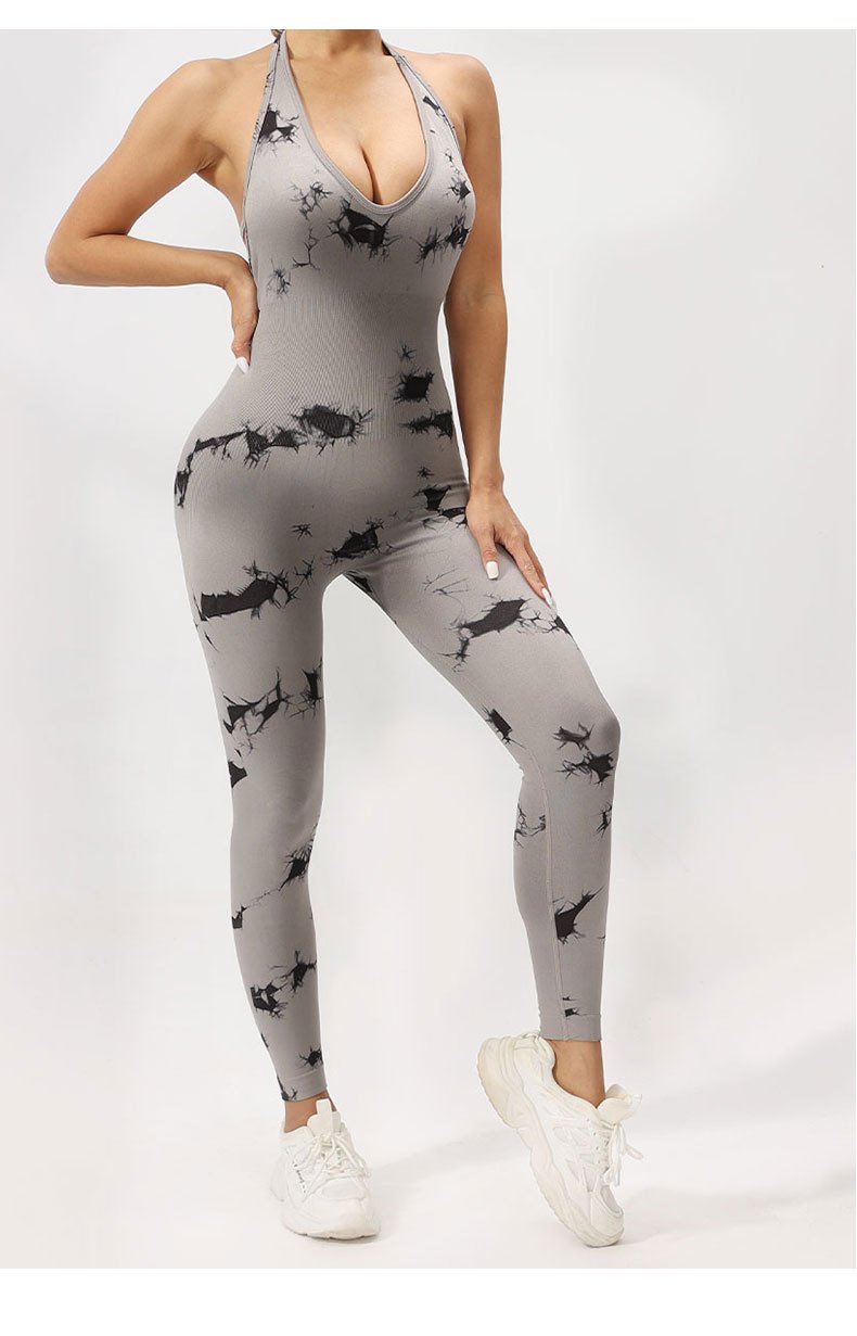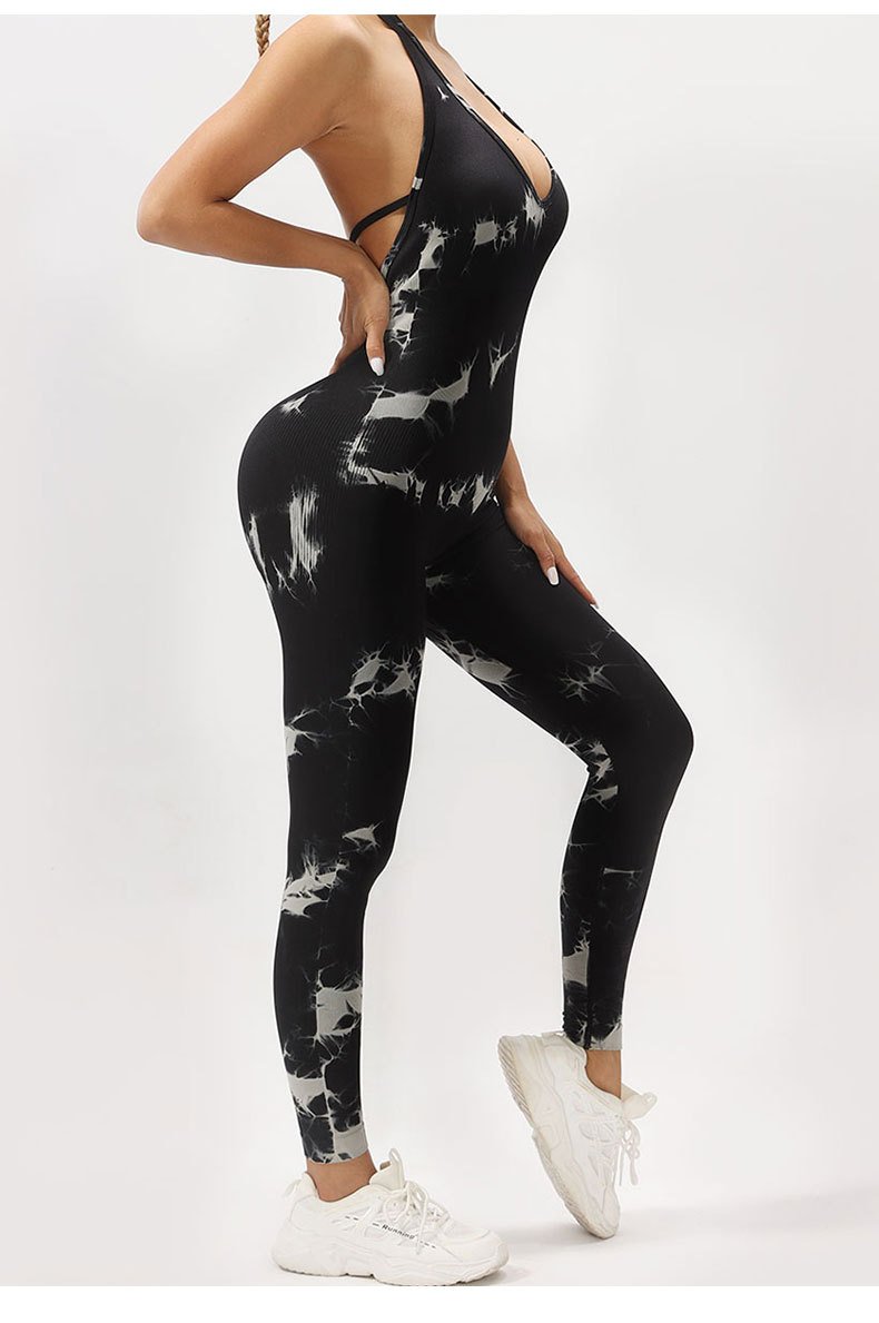 Seamless Deep V-Neck Tie-Dye Jumpsuit SZJ002