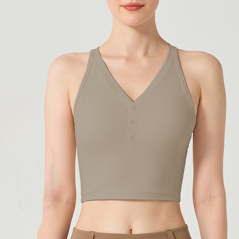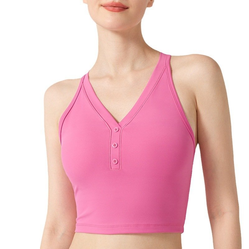 Women’s V-Neck Button Sports Bras & Crop Tops FYB004